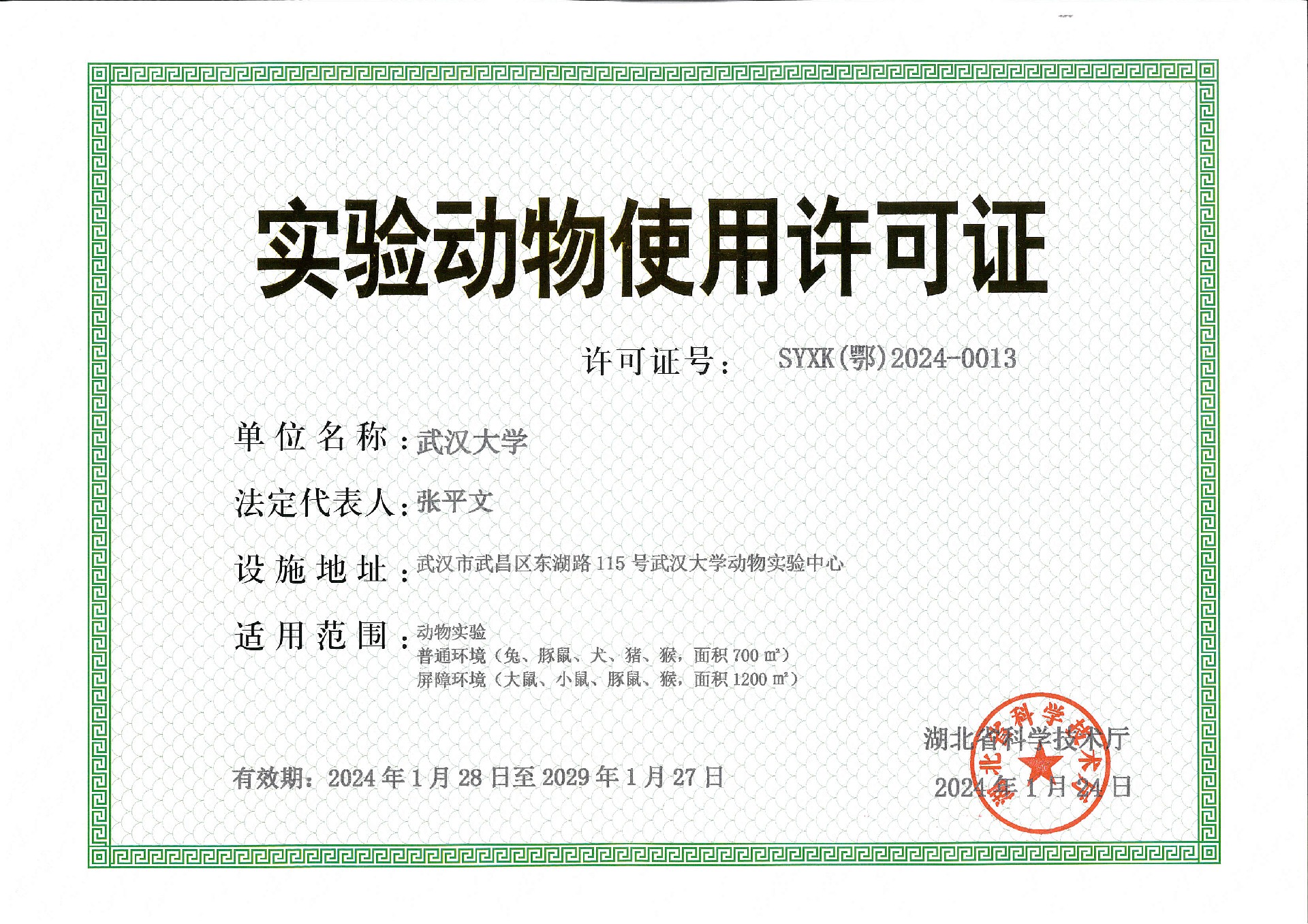 武汉大学动物实验中心行政许可资质